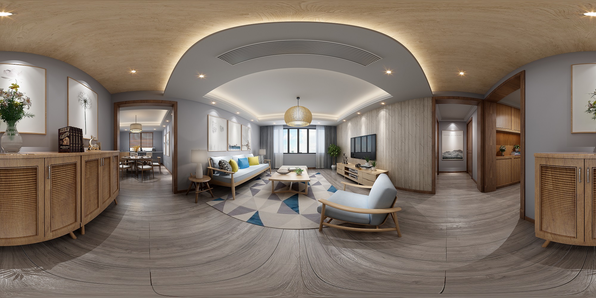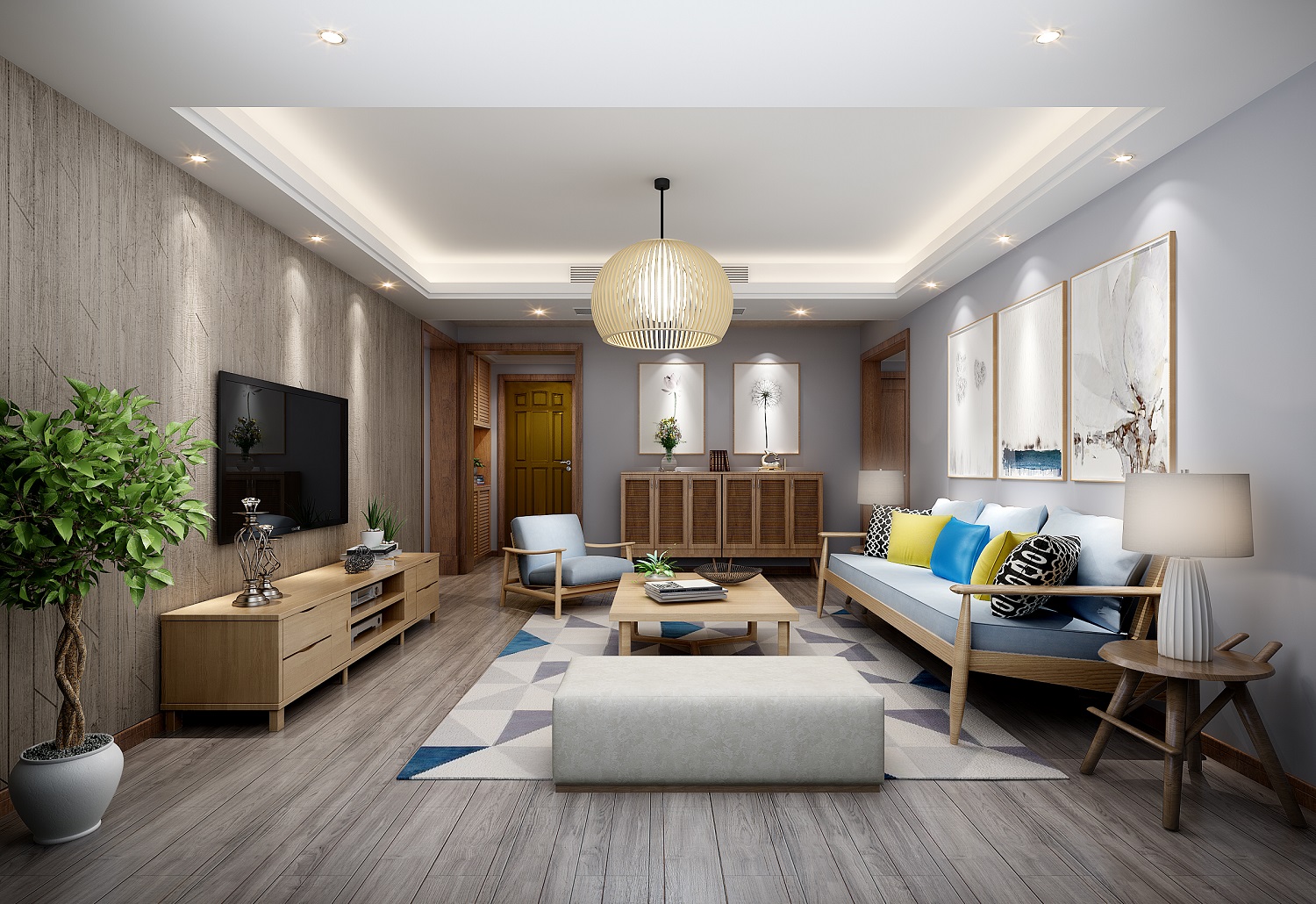 日式室内设计中色彩多偏重于原木色,以及竹、藤、麻和其他天然材料颜色,形成朴素的自然风格。
