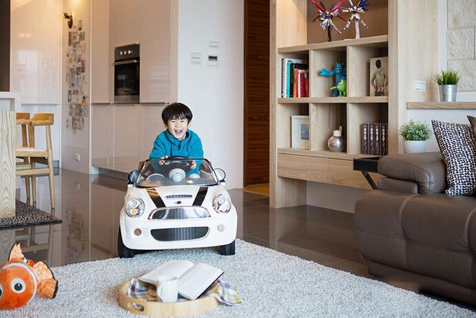 家,是小盆友开始成长的地方,上幼儿园前,吃喝玩乐基本都在这里。他才不会老老实实的呆在小床上扣手机呢,开个小汽车绕来绕去,尽量将房间内的阻碍降低到最低。