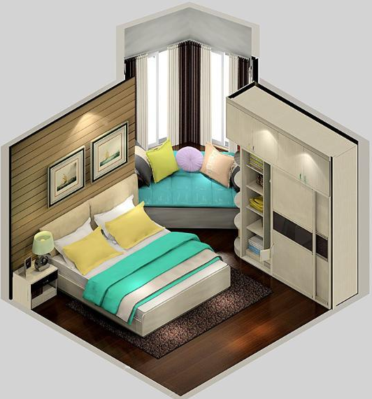 1、卧室——在飘窗凹位做个休闲区